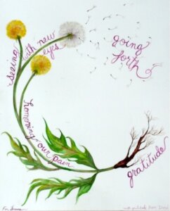Smutek, který cítíme při pohledu na to, co se děje ve světě a s ním, je přirozený a potřebuje být uznán. Když se naladíme na soucit se sítí života, můžeme se začít vnímat jako součást bohatšího společenství nad rámec běžného pojetí individuality a úzkého kruhu bližních. Vykročení ze zaběhnutého vnímání nás může otevřít inspiracím rezonujícím s evolučním impulsem. Poslední krok transformačního procesu nabízí cvičení, která nám mají pomoci spojit se s osobní vizí pro svět, jaký bychom rádi předali našim dětem, a nalézt svou roli v procesu změny, jež k němu může přispět. Posiluje naše odhodlání příměrem k hrdinským příběhům, v nichž protagonista vždy čelí úkolu, který se zprvu zdá být nad jeho síly, ale postupně získává spojence a opatřuje si nástroje i vytrvalost, jež jej dovede k vítězství.