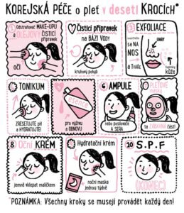Čtenáři se dozví o korejském přístupu „pleť na prvním místě“, který sestává z vytvoření dobrých každodenních návyků, dobré obeznámenosti s vla