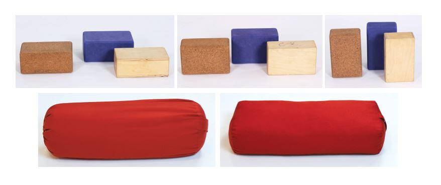 Než začnete s restorativní jógou, pořiďte si nejméně dva bloky. Vyrábějí se z korku, dřeva či pěny. Nejraději mám ty z tvrzené pěny. Jsou odolnější než ostatní a při dotyku s tělem působí měkčeji než korek či dřevo. Bloky dokážou tělo podepřít v místech, kde je třeba, snadno se s nimi pracuje a nezaberou moc místa. Doporučuji velikost přibližně 10 x 15 x 23 cm.